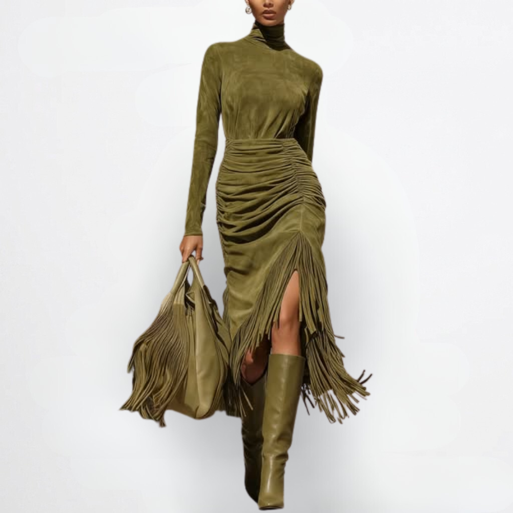 Camilla | Sofistikert Grønn Kjole med Impeccabel Krysset Silhuett