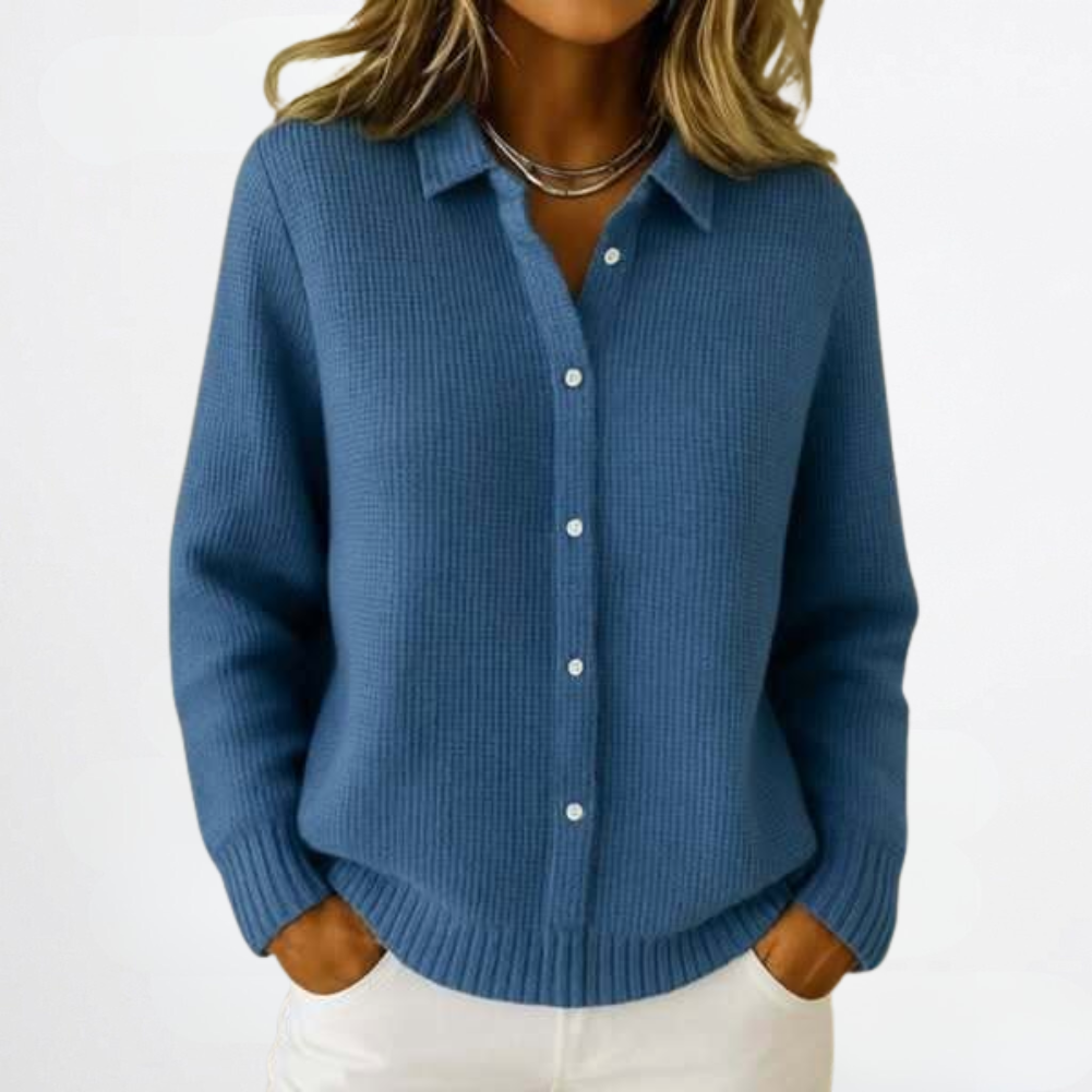 Cardiganen Hanne legemliggjør en stil og komfort som varer. Med sin raffinerte krage, myk bomullsmiks og lett innsvingt passform, tilfører den et snev av eleganse til ethvert antrekk. Bruk den med jeans, skjørt eller kjoler for et utseende som føles både selvsikkert og klassisk.